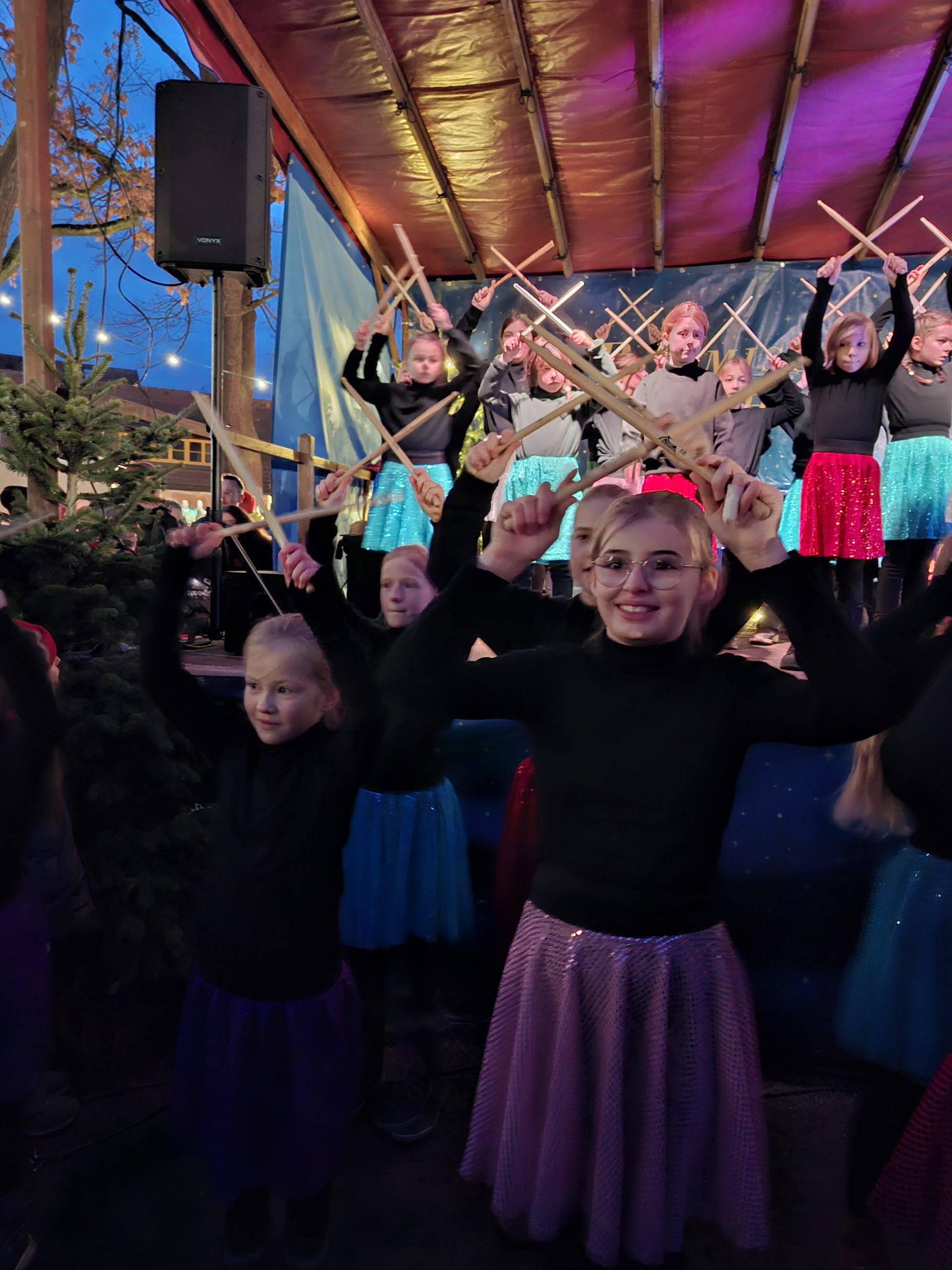 Später erfreuten auch Klassiker wie „Rockin‘ around the Christmas Tree“ und ein Tanz mit Sticks das zahlreiche Publikum. Spätestens bei diesen Tänzen waren dann alle Besucher in Weihnachtsstimmung und klatschen und sangen begeistert mit.